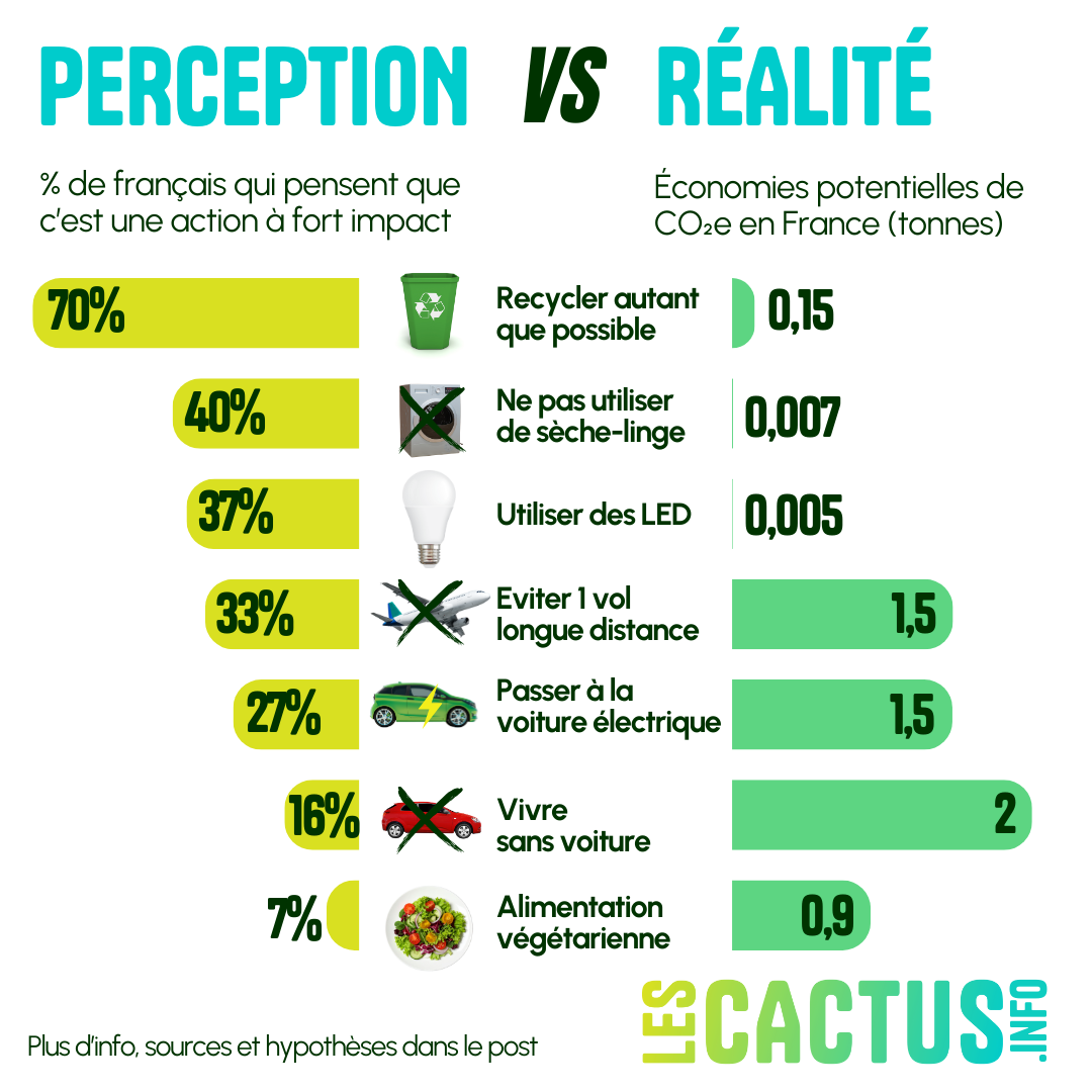 Ce sondage (mĂȘme sâil date de 2021), illustre parfaitement la raison dâĂȘtre des Cactus : donner Ă chacun les clĂ©s pour rĂ©duire efficacement ses Ă©missions de gaz Ă effet de serre (COâe).